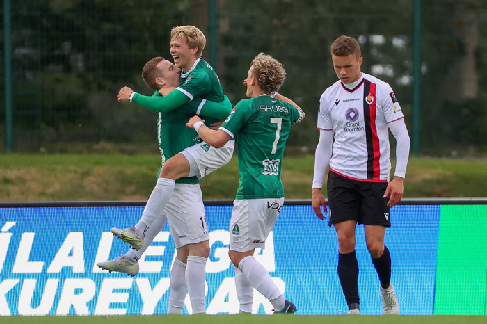 Stuttu seinna skoraði Jason sitt annað mark en Höskuldur Gunnlaugsson átti fasta aukaspyrnu að marki Víkings sem Þórður Ingason sló út í teiginn þar sem Jason var fyrstur til knattarins og setti hann í netið.