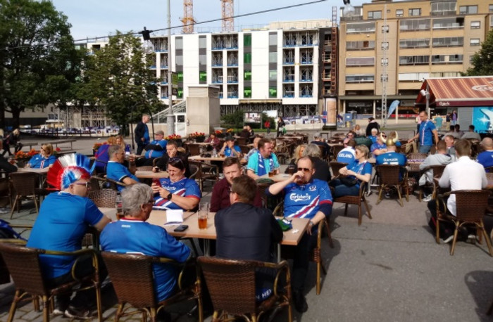 Íslendingar hafa streymt til Tampere í dag og sameinast í gleðinni á Passion barnum rétt hjá lestarstöðinni í miðbænum.