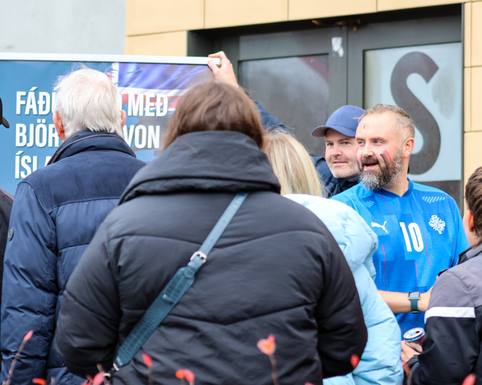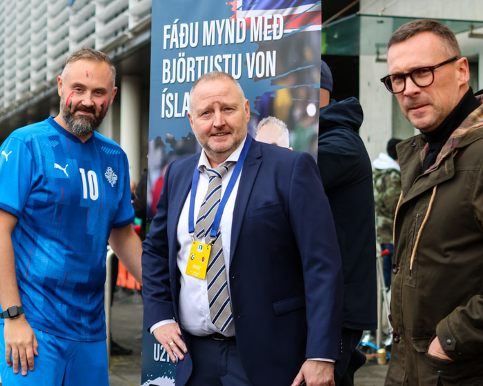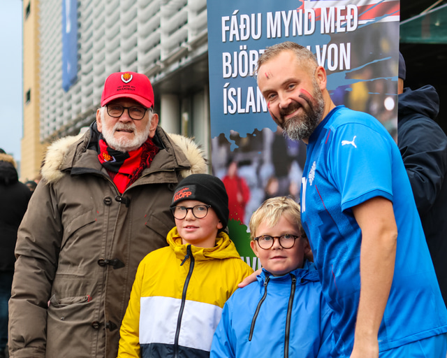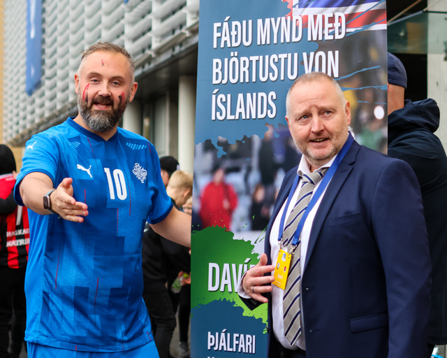 Hópur fólks fékk í gær mynd af sér með björtustu von Íslands fyrir úrslitaleik Mjólkurbikars karla.