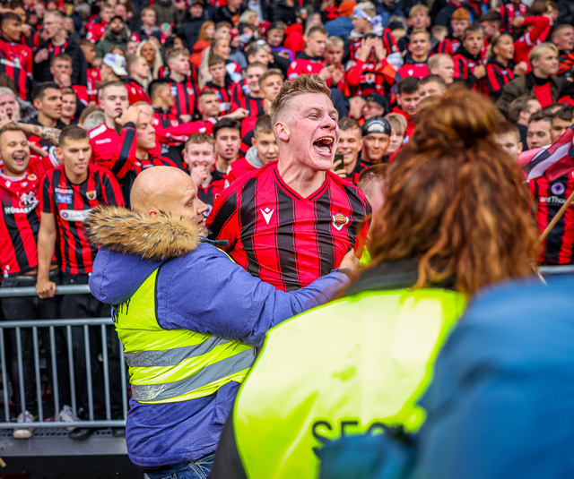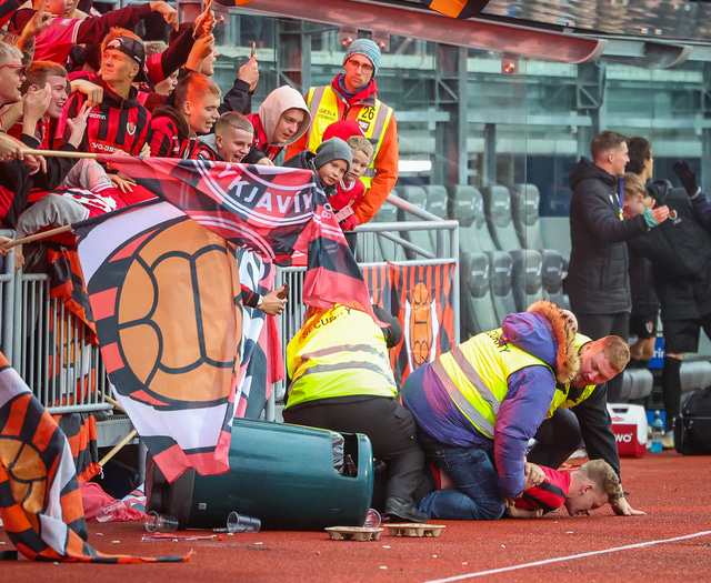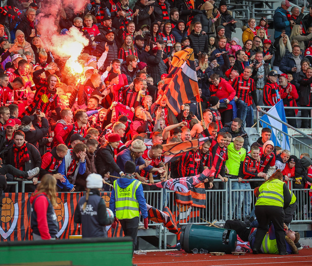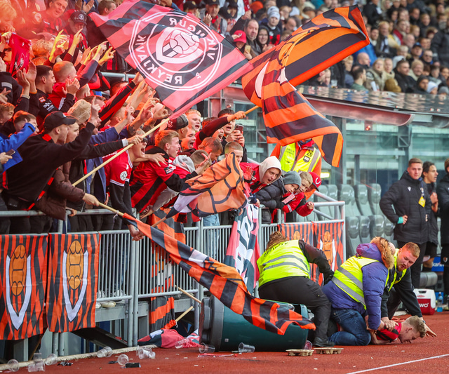 Einn gekk svo langt að hlaupa inn á völlinn á meðan gæslufólk horfði í hina áttina og þá voru mikil átök eftir annað mark Víkinga í leiknum þar sem einn var snúinn niður.