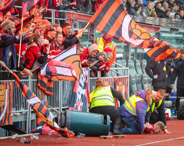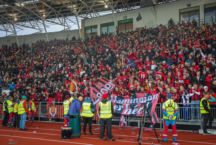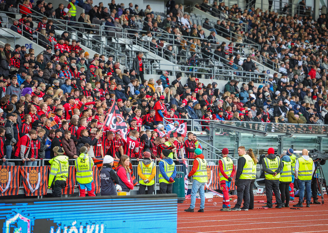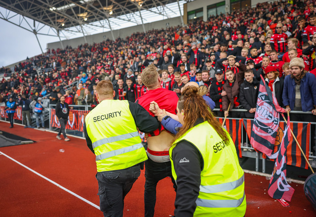 Öryggisgæslufyrirtæki sem starfaði við leikinn og hjálparsveitarfólk sem aðstoðaði gekk illa að hemja ákveðna stuðningsmenn Víkinga.