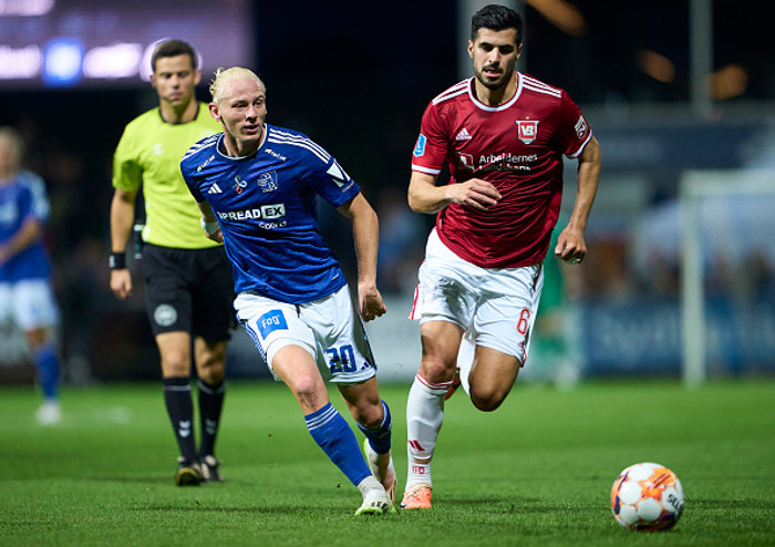 „Það er mjög gaman. Þetta er frábær leikmaður, ennþá í góðu formi og gott að hafa hann bak við sig. Hann er mjög öruggur á boltann og það eru mikil gæði í honum og hann les leikinn vel," segir Kolbeinn en fyrra mark Lyngby í kvöld kom eftir hornspyrnu frá honum.
