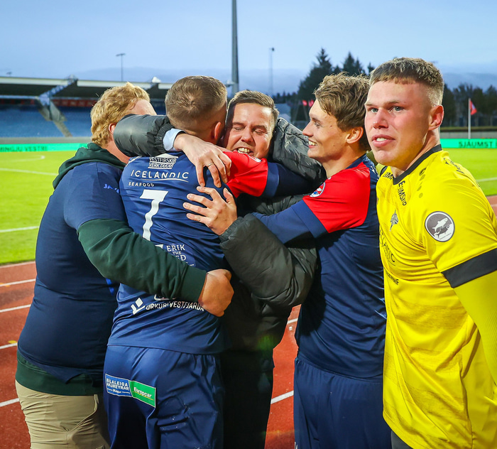 „Núna setjum við okkur ný markmið. Auðvitað er ég hátt uppi núna og fullur af sjálfstrausti. Maður er oft sleginn mikið niður, en við verðum að stefna hátt áfram. Ég er ekki að segja það að Vestri sé að fara að verða Íslandsmeistari á næsta ári, en við verðum að horfa í það að byggja ofan á það sem við erum búin að gera. Fólkið sem ég vinn með, við viljum gera okkur gildandi. Það er mjög jákvætt ef við getum tryggt það að við spilum áfram í Bestu deildinni en verðum við ekki allavega að horfa í það að næsta skref er að koma Vestra í Evrópu? Það er bara þannig."