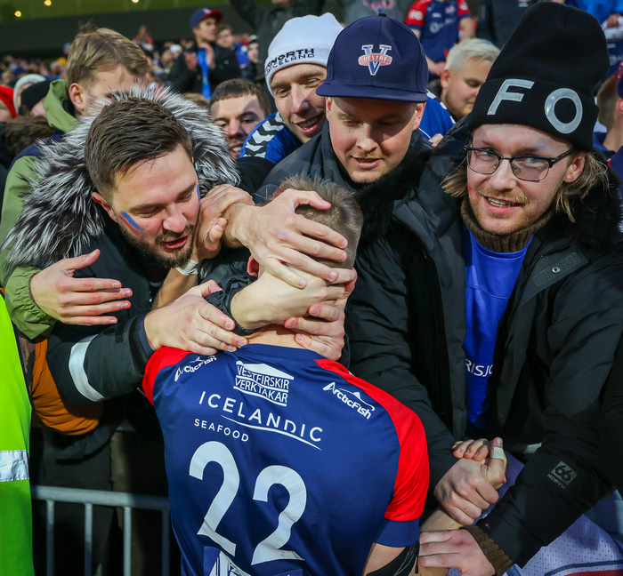 Á Laugardalsvelli var vel mætt að vestan og frábær stuðningur á bak við liðið úr stúkunni.