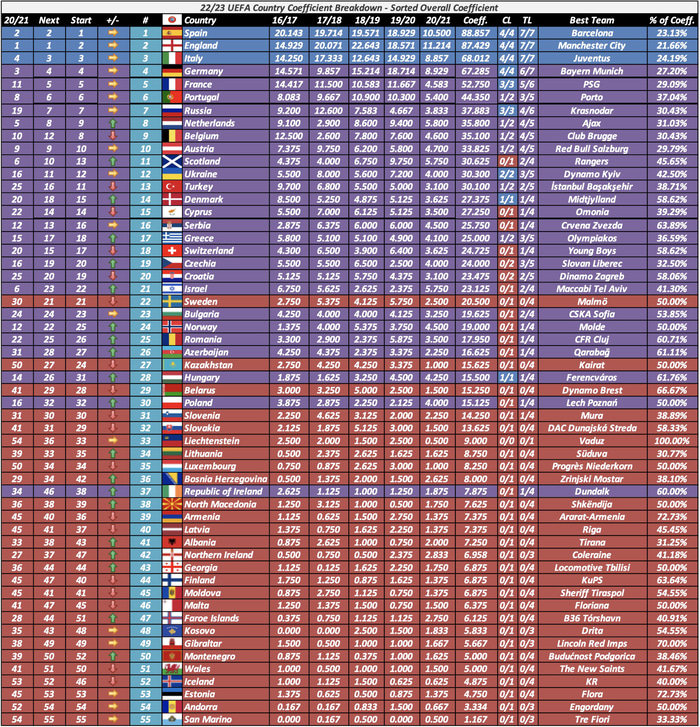 Það má því segja að íslensk félagslið séu í „ruslflokki" meðal fótboltaliða Evrópu en þessi staða gerir það að verkum að frá og með tímabilinu 2022 mun Ísland aðeins fá þrjú Evrópusæti frá UEFA í stað fjögurra.