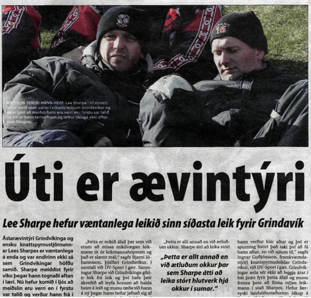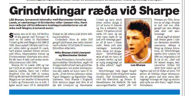 Það vakti gífurlega athygli síðla árs 2002 þegar fréttir bárust af því að Grindavík ætti í samningaviðræðum við Lee Sharpe. Enski kantmaðurinn var á þessum tíma 31 árs gamall og án félags eftir að hafa átt farsælan feril með liðum eins og Manchester United, Leeds og Sampdoria. Sharpe lék á sínum tíma hátt í 200 leiki með Manchester United og því var mikið fjallað um það í Bretlandi þegar hann samdi síðan við Grindvíkinga árið 2003 eftir nokkurra mánaða umhugsun.