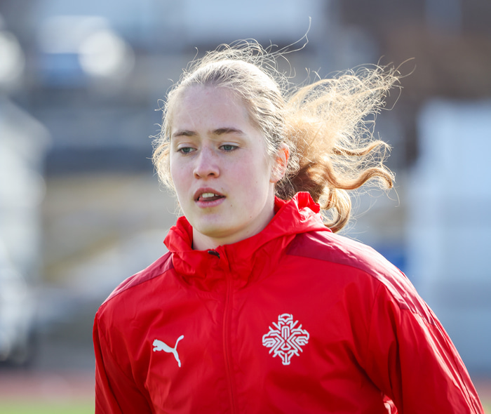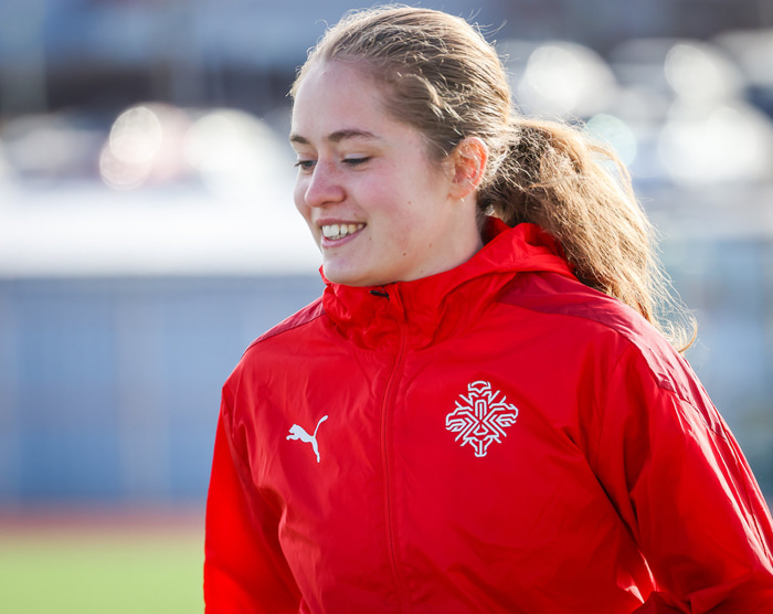 Fanney varði mark Íslands gegn Danmörku í lokaleik riðilsins í Þjóðadeildinni. Það var hennar fyrsti landsleikur og var Fanney maður leiksins í sigri.