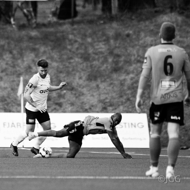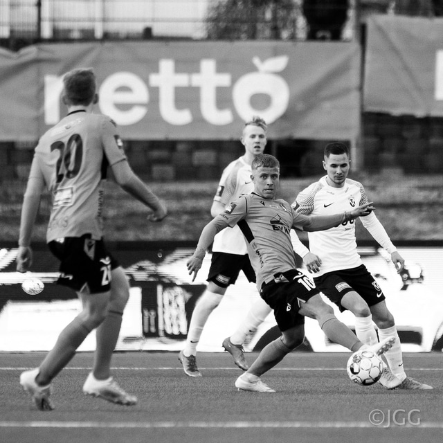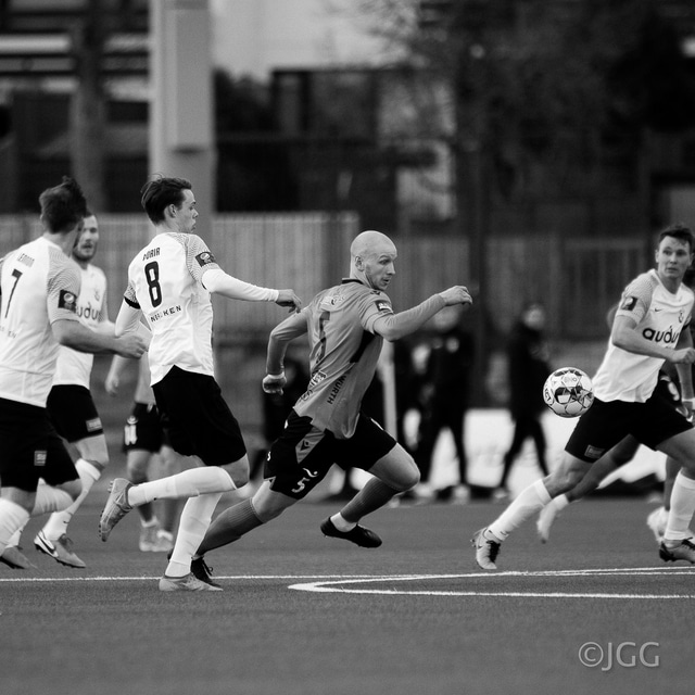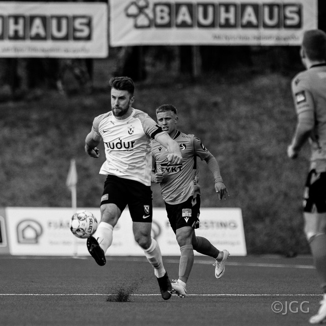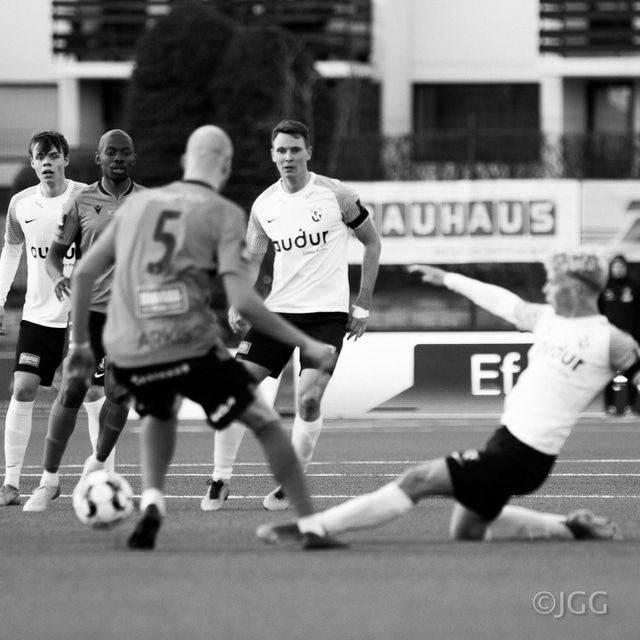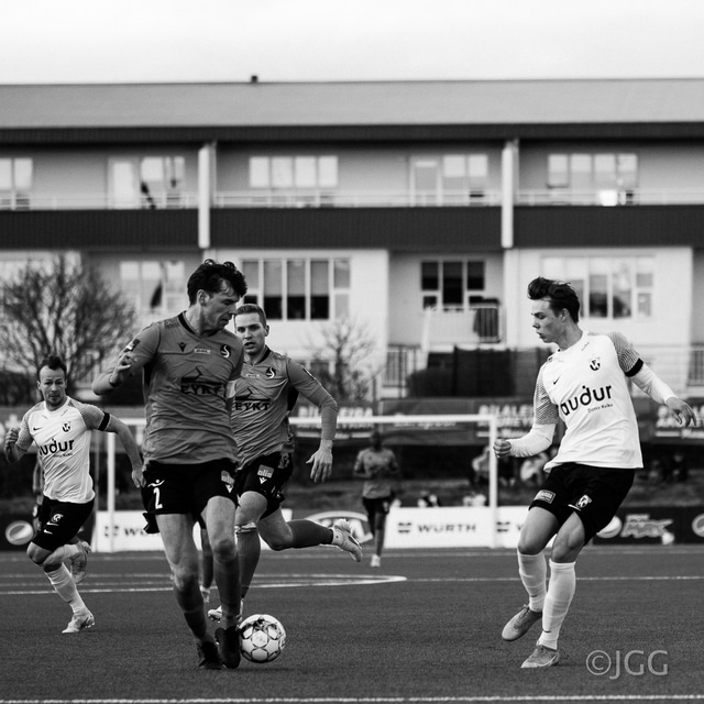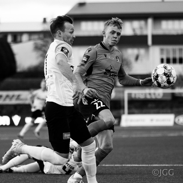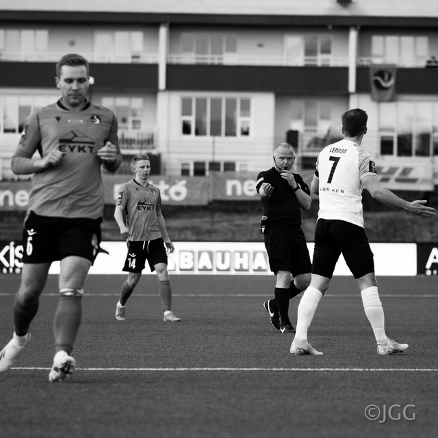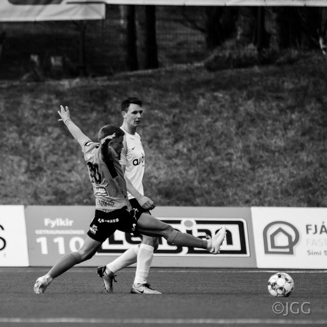 FH vann Fylki 2 - 0 í Pepsi Max-deild karla í fyrrakvöld. Jónína Guðbjörg Guðbjartsdóttir mætti á leikinn með svarthvíta filmu og tók þessar myndir.