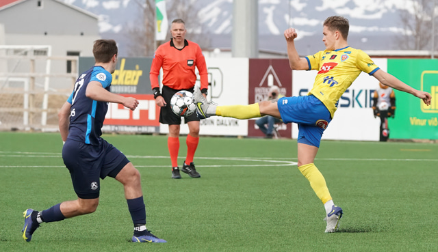 KA vann 3 - 2 sigur á Keflavík í 3. umferð Bestu-deildar karla í gærkvöldi. Hér að neðan er myndaveisla Sævars Geirs Sigurjónssonar frá Dalvík.