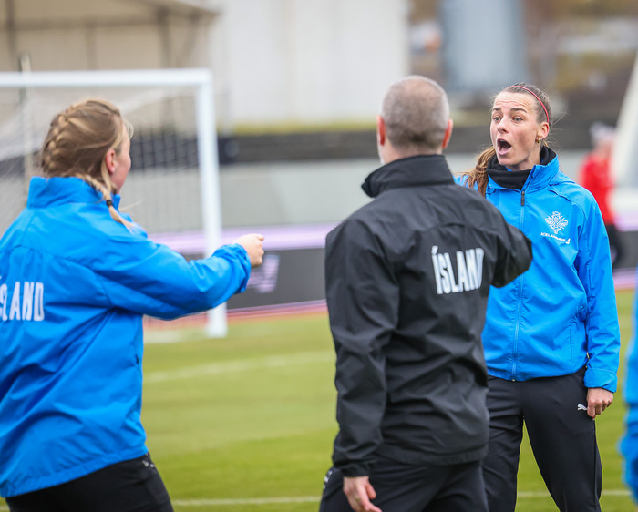 Það er virkilega góð stemning í hópnum og gaman á æfingasvæðinu eins og mátti sjá á myndbandi sem KSÍ birti á samfélagsmiðlum sínum í gær. Í myndbandinu rífast Hallbera Guðný Gísladóttir og Ingibjörg Sigurðardóttir í léttum dúr um það hvor þeirra hafi svindlað meira á æfingunni.