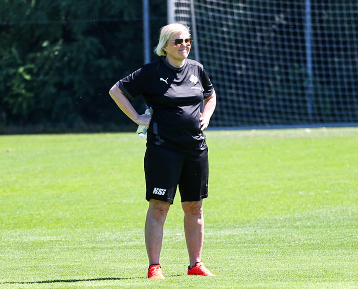 Vanda Sigurgeirsdóttir, formaður KSÍ, mætti til Þýskalands í gær og var hún viðstödd æfingu liðsins í dag.