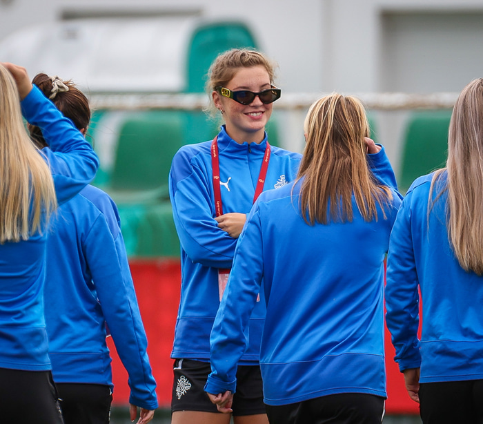 „Ég er ekkert búin að tala við þennan nýja þjálfara. Núna er einbeitingin bara á EM. Hann sendi okkur smá kveðju þegar hann var ráðinn en ekkert meira en það.”