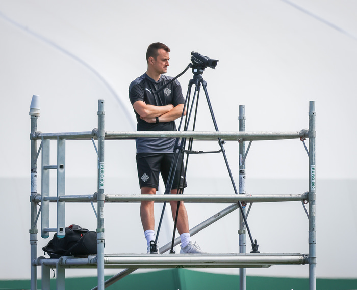„Fyrir þremur og hálfu ári voru held ég tekin samtöl innan KSÍ að bæta greiningarstarfið innan sambandsins. Ég held að það hafi ekki verið neinir greinendur á Íslandi á þeim tíma. Þeir höfðu samband við mig í gegnum fyrirtækið sem ég vann fyrir á þeim tíma, Hudl, sem er notað af mörgum félögum víða um heim. Ég kom fyrst í tveggja vikna ráðgjafastarf en þremur og hálfu ári síðar er ég enn hérna," sagði Tom sem segir það frábært að vinna með kvennalandsliðinu og öðrum landsliðum Íslands.