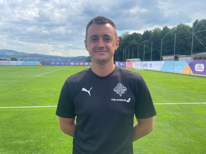 Hann er greinandi fyrir íslenska landsliðið á Evrópumótinu í Sviss en hann hefur starfað fyrir KSÍ í þrjú og hálft ár núna.