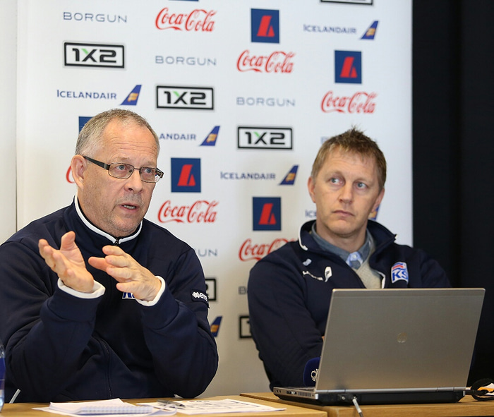 Lars Lagerback og Heimir Hallgrímsson landsliðsþjálfarar Íslands tilkynntu nú rétt í þessu landsliðshópinn fyrir komandi leiki gegn Lettum og Hollendingum í undankeppni EM.