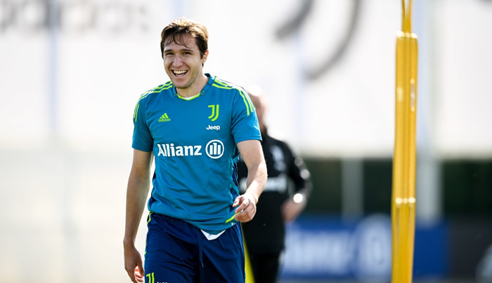 Federico Chiesa meiddist á hné í upphafi árs og þurfti að fara í aðgerð. Félagið birti myndir af honum á æfingu í dag og er það í fyrsta sinn sem hann æfir með liðinu frá því hann meiddist snemma í janúar.