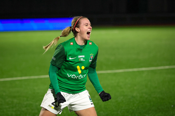 „Það er frábær tilfinning, geggjaður bolti frá Andreu þarna," sagði Berglind en það er spurning hvort Andrea hafi verið að reyna að skjóta í undirbúningnum.