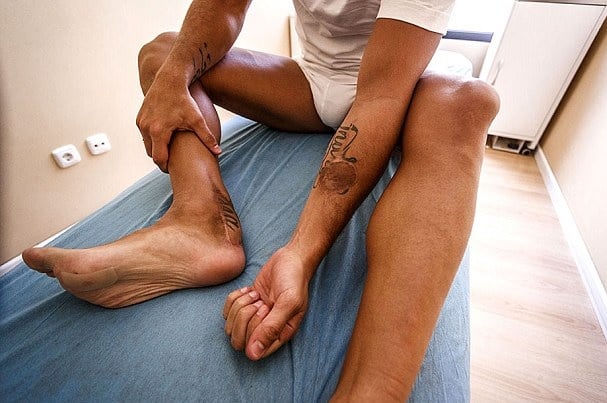 Meðfylgjandi mynd er úr spænska blaðinu Marca þar sem sést hvernig skinn var tekið af hægri handlegg hans og grætt á ökklann.