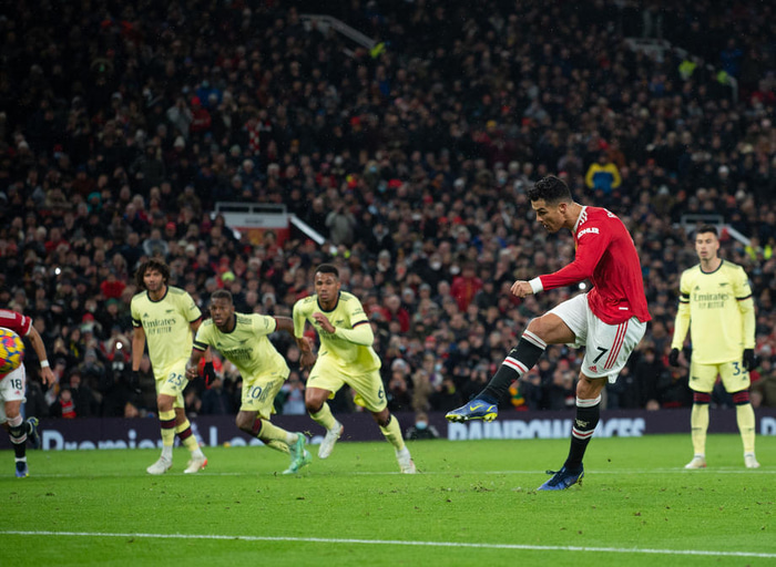 Bruno Fernandes, leikmaður Manchester United, segir að það hafi verið komið að Cristiano Ronaldo að taka víti fyrir liðið er það vann Arsenal 3-2 á Old Trafford í gær.