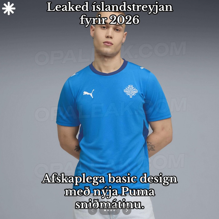 Ný landsliðstreyja Íslands lak á netið í gær en óhætt er að segja að í hönnun hennar sé einfaldleikinn allsráðandi.