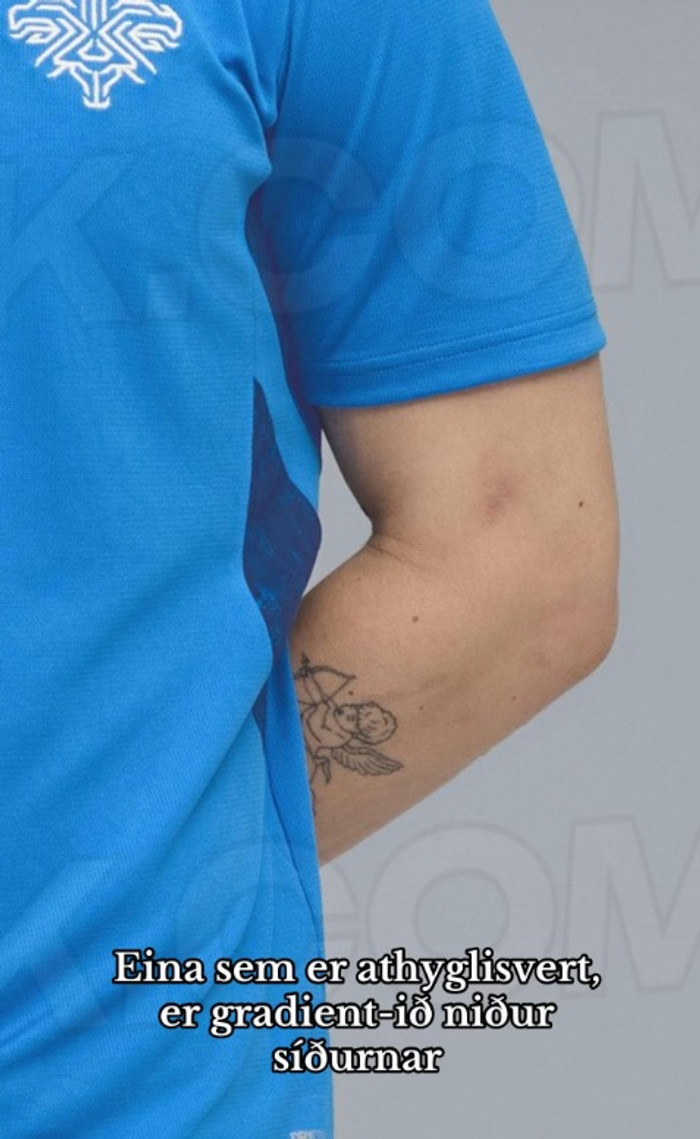 Ingvar Breiðfjörð birti myndir af nýju treyjunni á TikTok í gær og gefur henni sjálfur 4 af 10 í einkunn. Fyrir neðan kragann aftan á treyjunum má finna orðið 'liðsheild'.