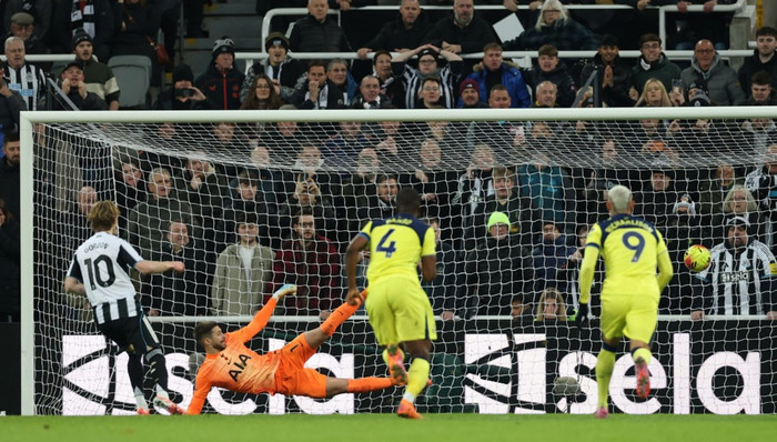 Newcastle tók forystuna 2-1 gegn Tottenham eftir að hafa fengið VAR víti en Cristian Romero jafnaði í 2-2 fyrir Spurs með bakfallsspyrnu og urðu það lokatölur.