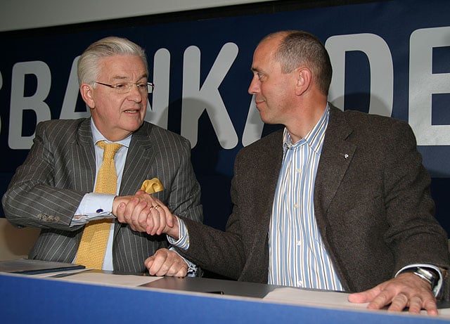 Björgólfur átti stóran eignarhlut í Landsbankanum og á þeim tíma hét efsta deild fótboltans á Íslandi Landsbankadeildin.