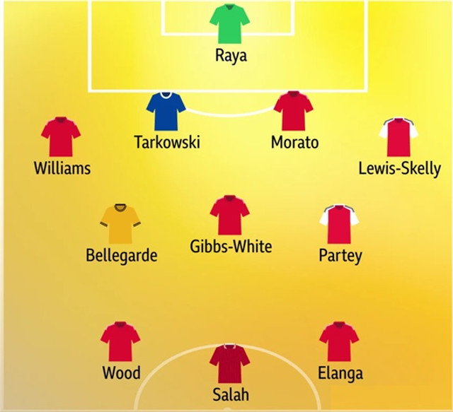 Sóknarmaður: Anthony Elanga (Nottingham Forest) - Þrjár stoðsendingar. Manchester United lét þennan leikmann fara fyrir Antony.