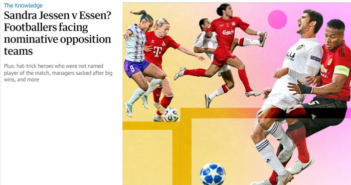 Breska blaðið Guardian fékk fyrirspurn sem tengist íslensku landsliðskonunni Söndru Maríu Jessen í lið sem kallast 'The Knowledge' en þar geta lesendur sent hinar ýmsu spurningar, oft sérkennilegar, varðandi fótbolta.