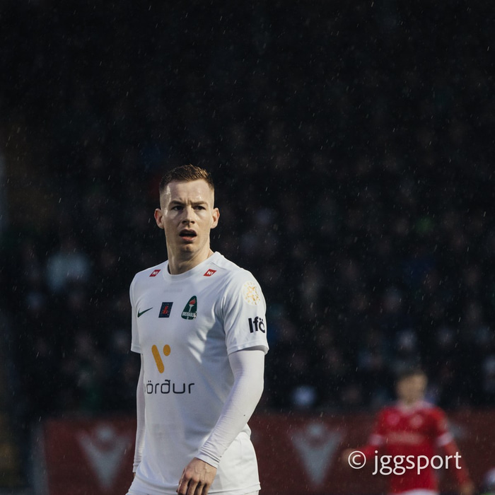 „Patrik var með boltann við hliðarlínuna Höskuldur sem betur fer missir af honum og ég veit það ekki ég set hann bara í fjær."