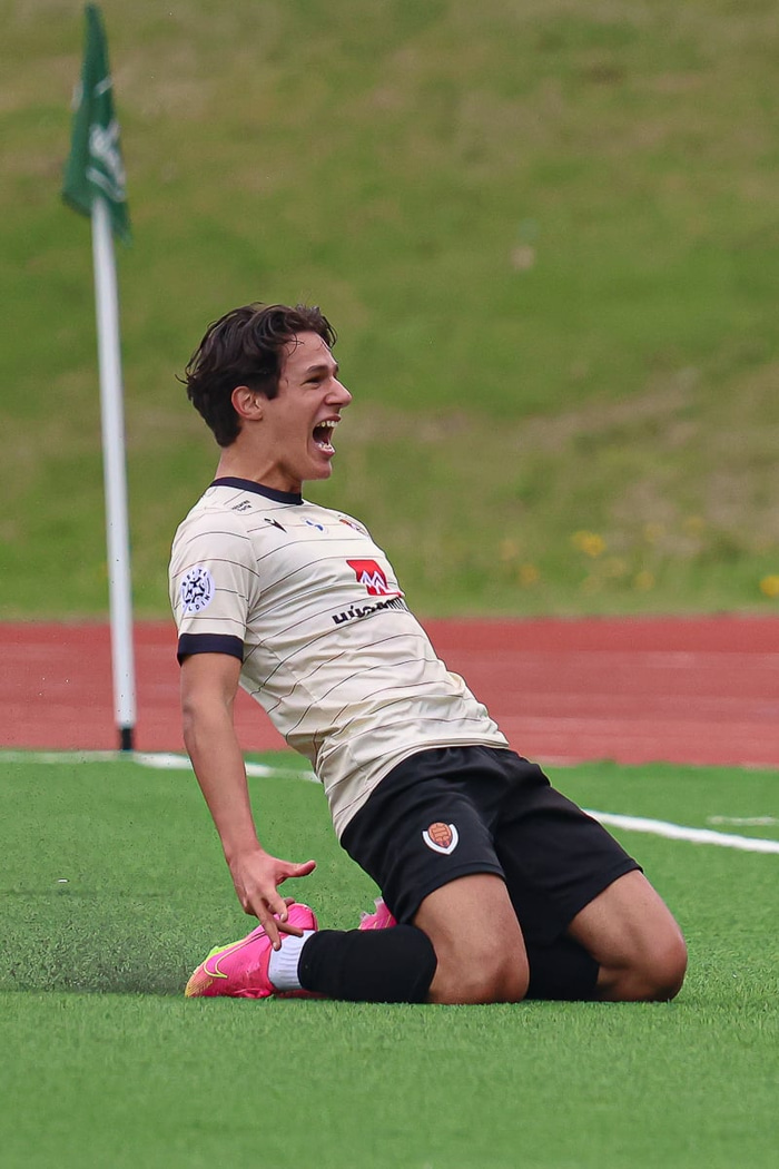Viðtalið við kappann má sjá hér að neðan og einnig er hægt að sjá markið sem hann skoraði.