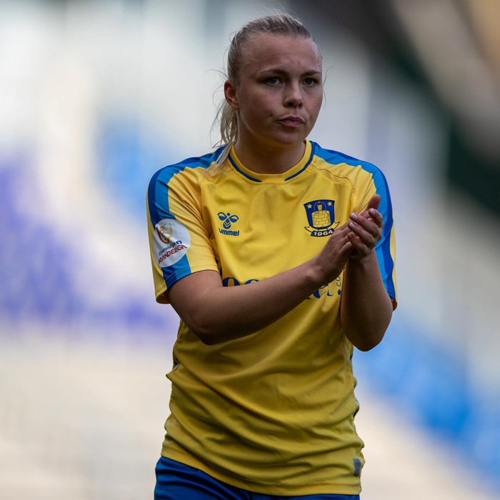 Kristín Dís fékk að spila lokamínúturnar í stórsigri gegn KoldingQ og er Bröndby í öðru sæti í dönsku titilbaráttunni.