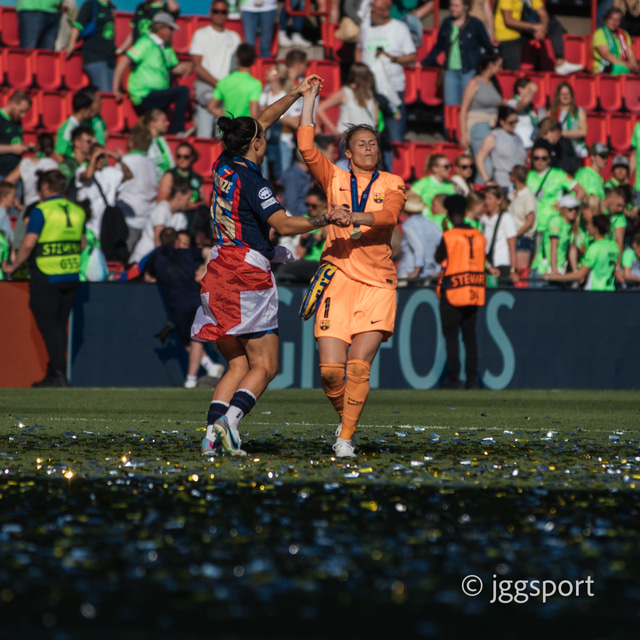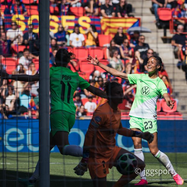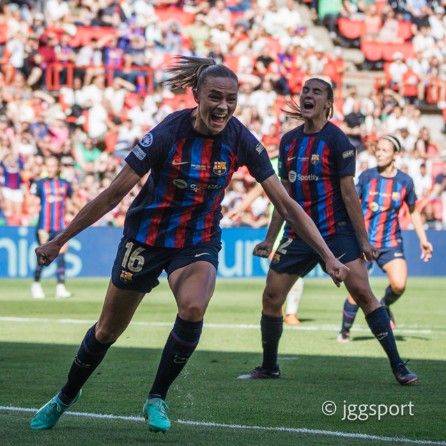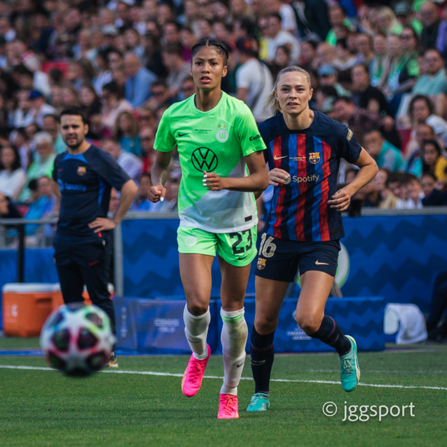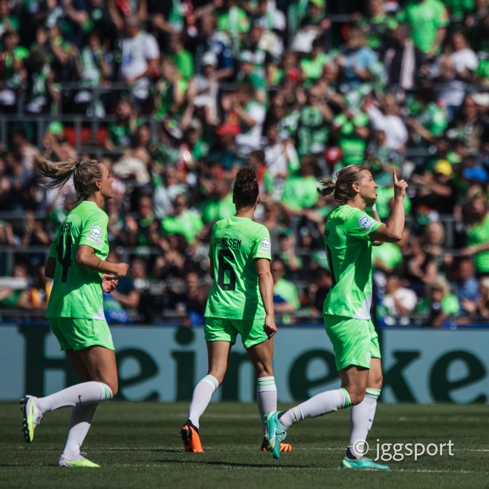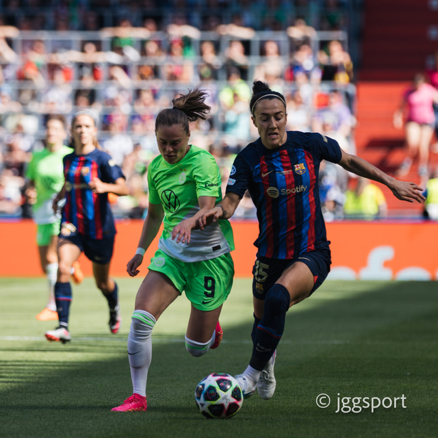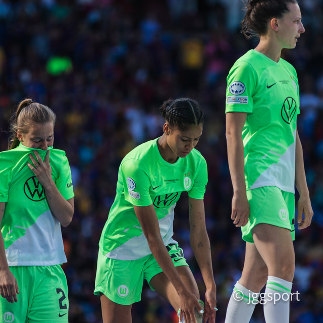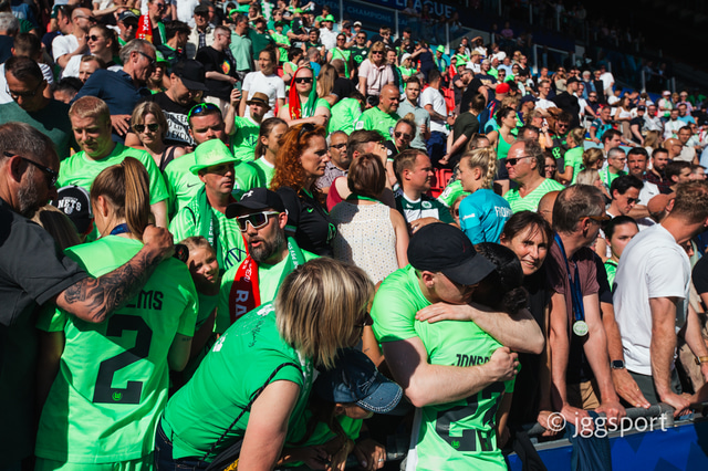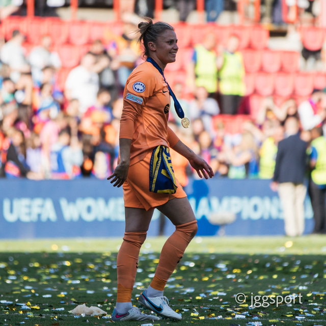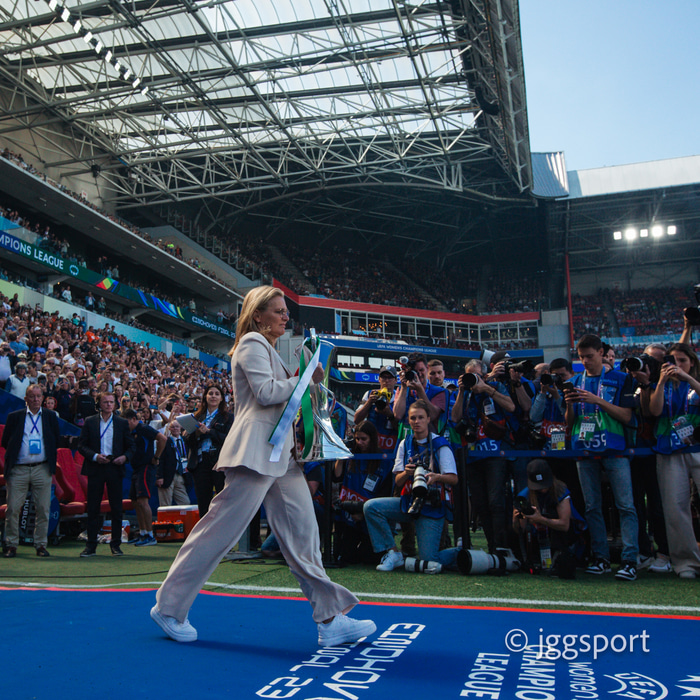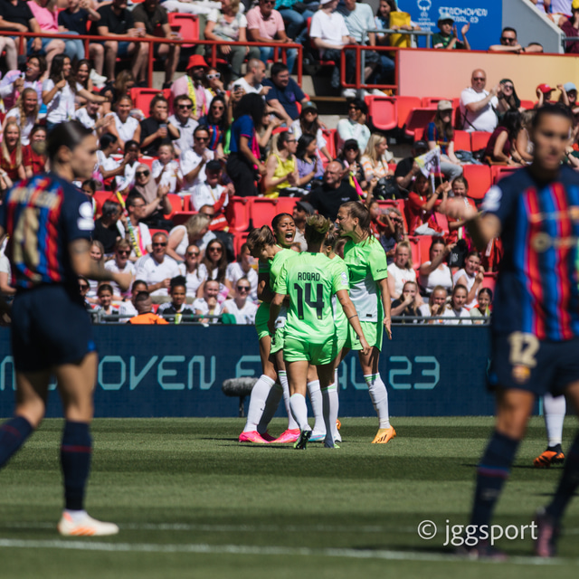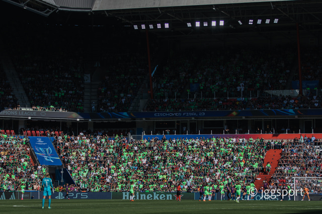 Barcelona varð í gærkvöldi Evrópumeistari kvenna eftir að hafa unnið 3 - 2 sigur á Wolfsburg, liði Sveindísar Jane Jónsdóttur í úrslitaleik í Eindhoven í Hollandi. Jónína Guðbjörg Guðbjartsdóttir var þar og náði þessum myndum.