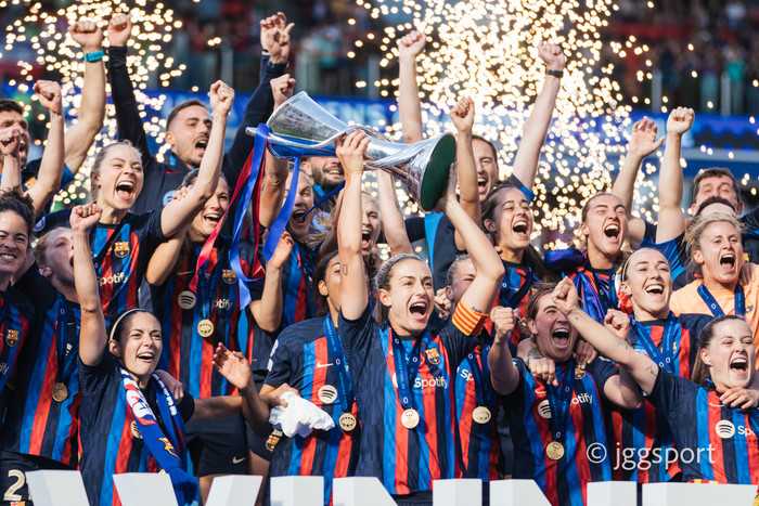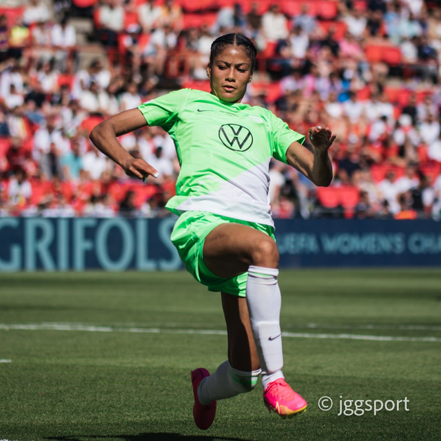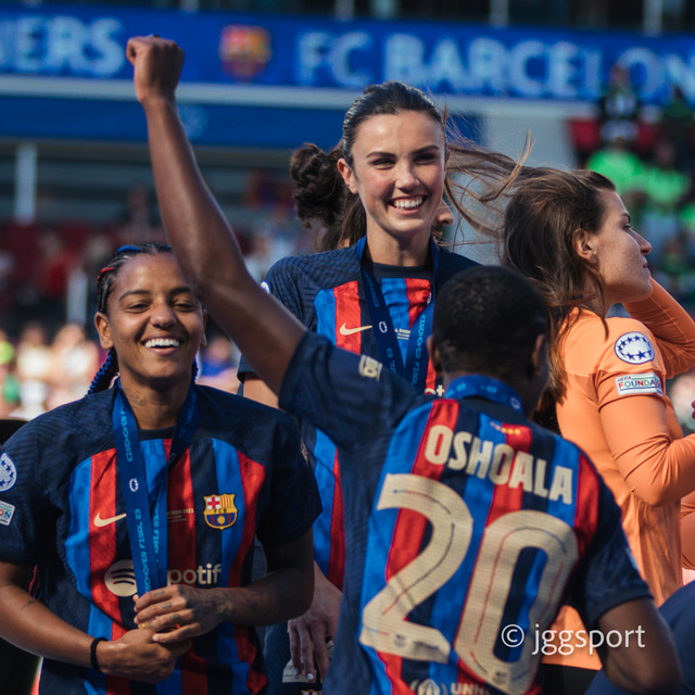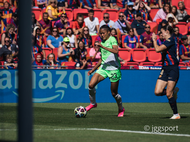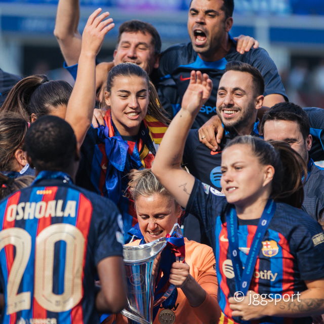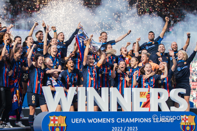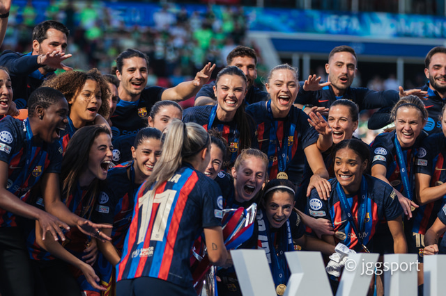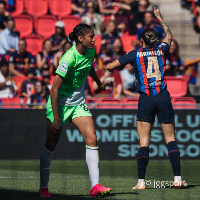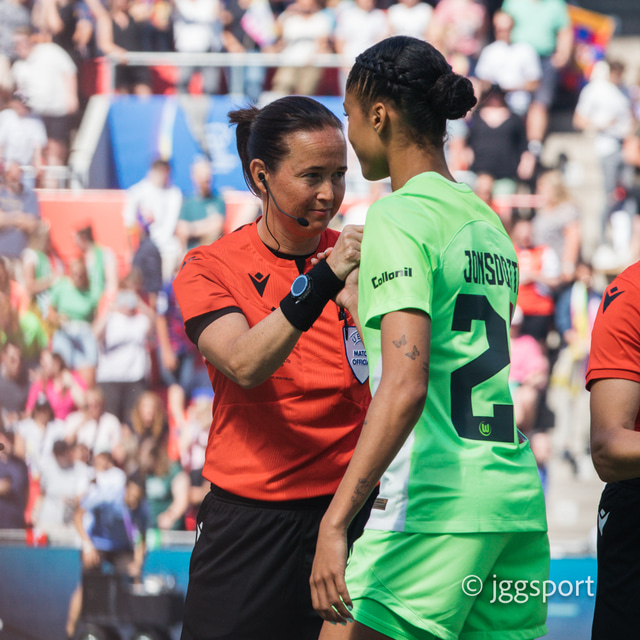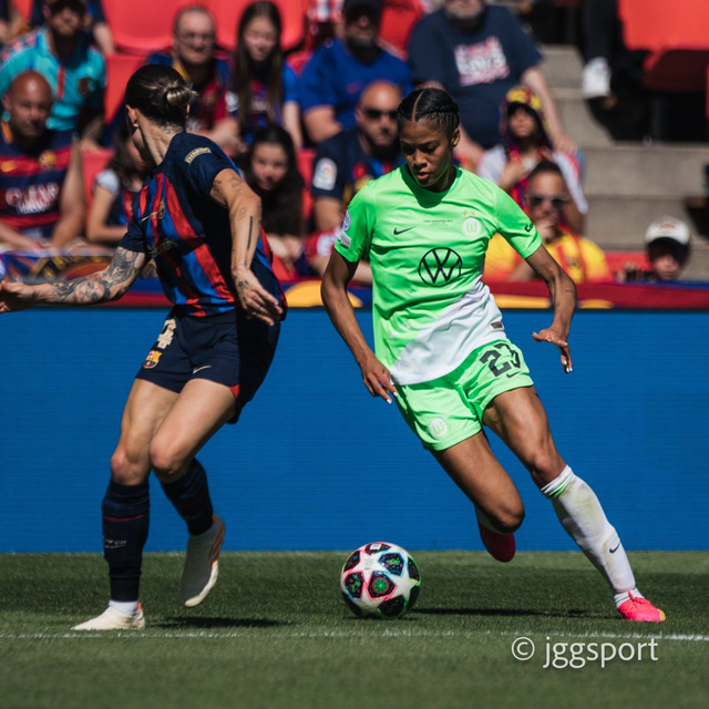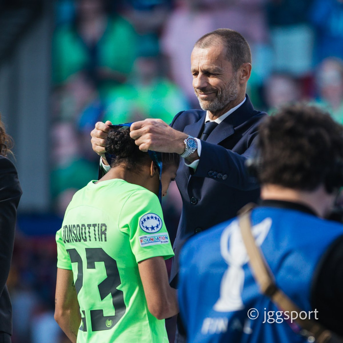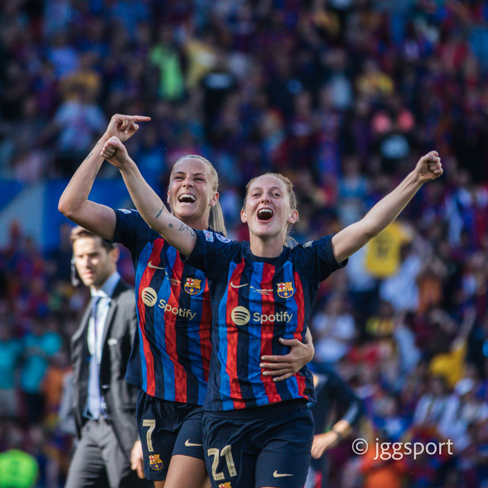 Barcelona varð í gærkvöldi Evrópumeistari kvenna eftir að hafa unnið 3 - 2 sigur á Wolfsburg, liði Sveindísar Jane Jónsdóttur í úrslitaleik í Eindhoven í Hollandi. Jónína Guðbjörg Guðbjartsdóttir var þar og náði þessum myndum.