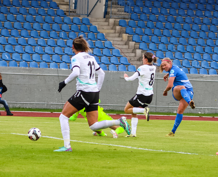 Hlín Eiríksdóttir kemur Íslandi yfir! Frábærlega gert hjá Guðrúnu Arnardóttur í undirbúningnum ????????