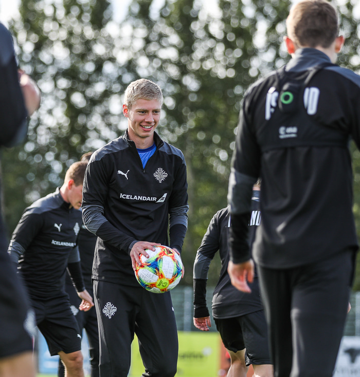Hann lék með U21 á lokamóti EM í mars og er hér á æfingu með liðinu.