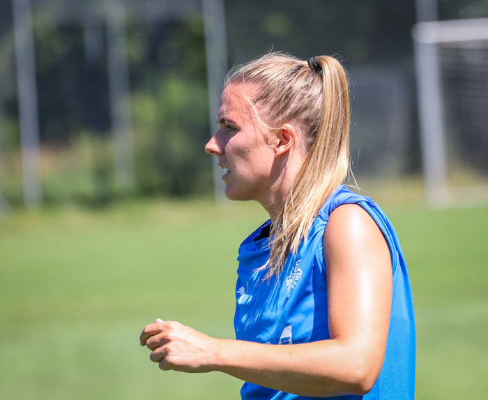 Glódís segir að þær hugsi mjög svipað inn á vellinum. „Það er mjög þægilegt. Þú talar líka mjög mikið. Mér finnst við oft hugsa eins. Þegar við náum ekki að tala, þá samt einhvern veginn tökum við sömu ákvörðun. Sem er plús því kannski munum við ekki heyra vel í hvor annarri á EM. Þá skiptir máli að hafa spilað saman og vita hvernig hin hugsar.”