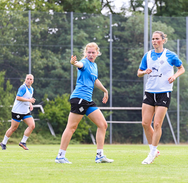 Amanda gat valið á milli þess að spila fyrir Ísland og Noreg, og valdi hún Ísland. Hún er á leið á sitt fyrsta stórmót en það er augljóst að eldri leikmenn liðsins eru að halda vel utan um hana.