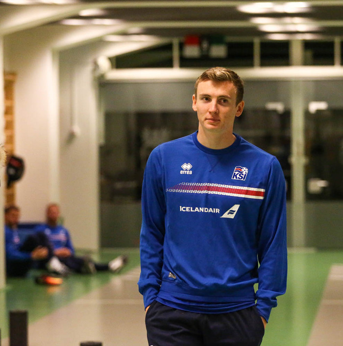 Sóknarmaðurinn Jón Daði Böðvarsson er í kapphlaupi við tímann til að vera klár í landsleikinn gegn Finnlandi á fimmtudag. Hann skokkaði á æfingu landsliðsins í dag á meðan liðsfélagarnir spörkuðu í bolta.
