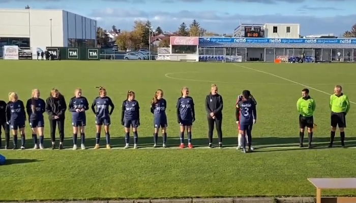 Heldur var þó brugði út af venjunni hvað varðar verðlaunaafhendinguna að þessu sinni en það kom í hlut Natöshu Anasi fyrirliða Keflavíkur að afhenda liðsfélögum sínum verðlaunapeninganna að leik loknum. Þar eru á ferðinni sóttvarnarráðstafanir vegna Covid-19 en ekki var að sjá að það skyggði á gleði Keflavíkurkvenna nema síður sé.