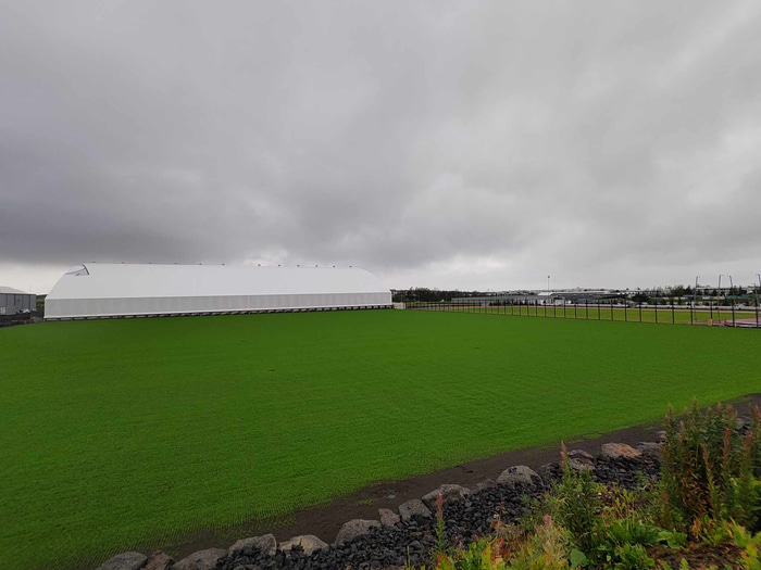 Á fréttamannafundi fyrir rúmum mánuði var greint frá því að setja eigi hybrid gras á Laugrdalsvöll en vinna við það á að hefjast á næstu mánuðum.