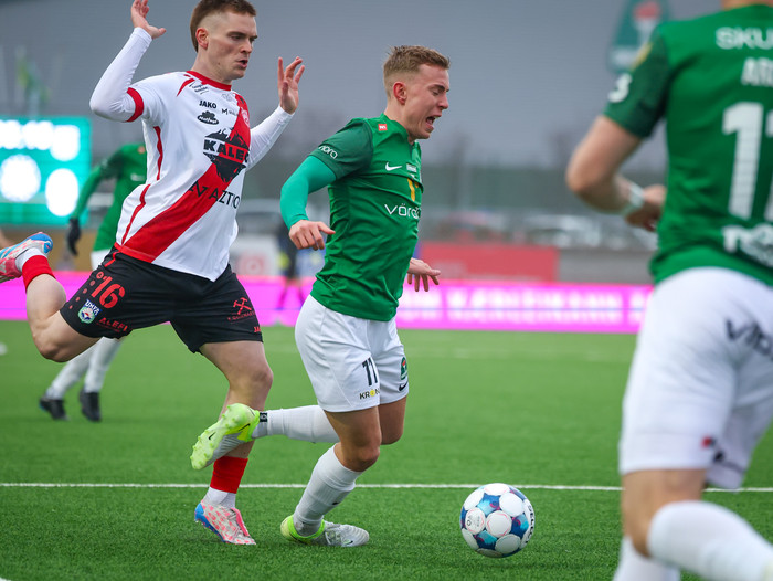 Óli Valur Ómarsson fékk tækifæri til að skora fyrsta mark leiksins eftir hálfa mínútu en Georg Bjarnason gerði mjög vel að komast fyrir.