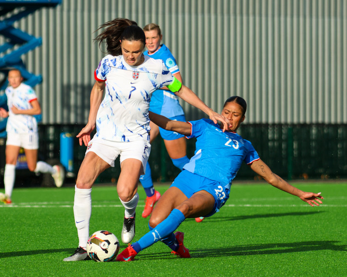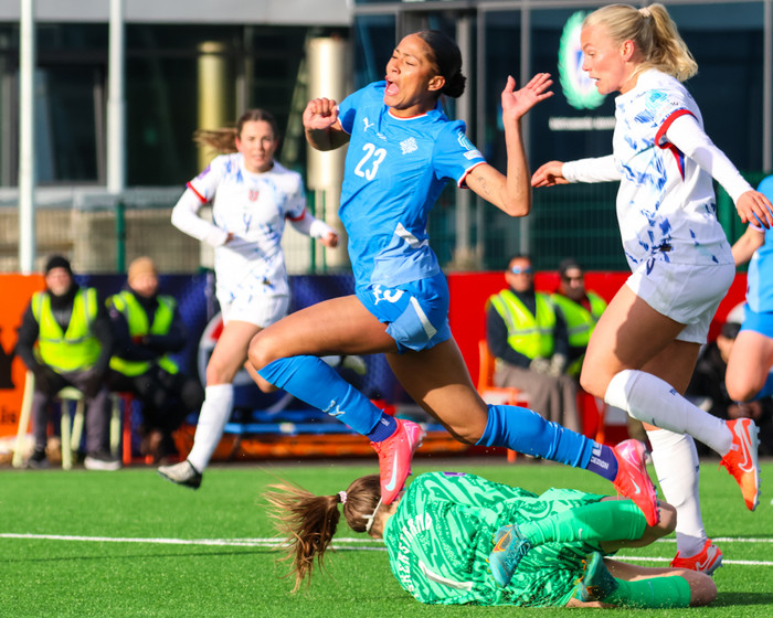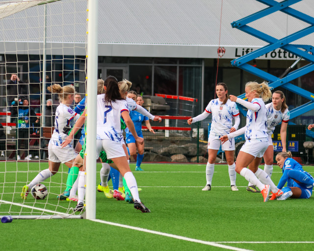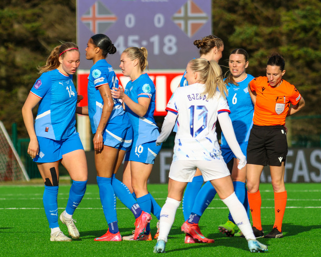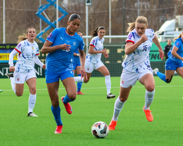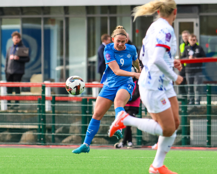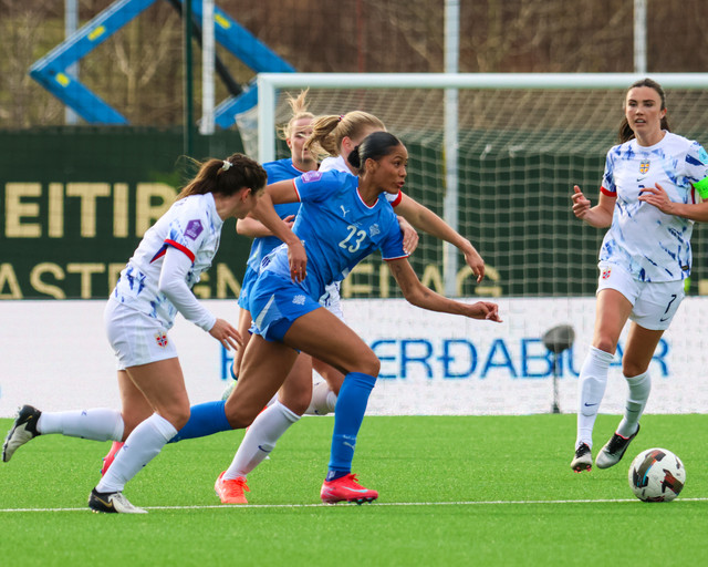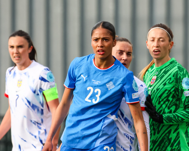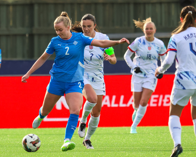 Íslenska kvennalandsliðið gerði svekkjandi markalaust jafntefli gegn Noregi í leik liðanna á Þróttarvelli í Þjóðadeildinni í gær. Ísland fékk helling af tækifærum til að klára leikinn. Hér að neðan er myndaveisla úr leiknum.