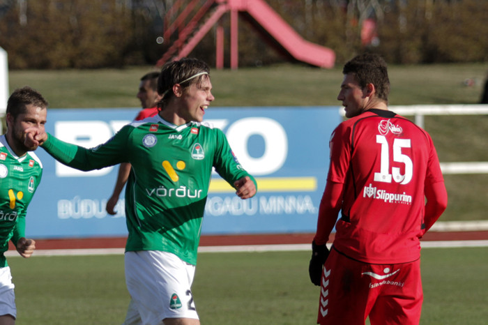 Árni skoraði tvívegis í dag og opnaði um leið markareikning sinn í sumar.
