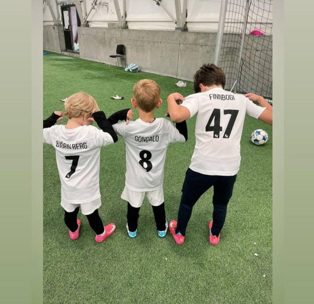 Hér fyrir neðan má sjá mynd af syni Bruno í treyju FH en hann er númer 8, eins og pabbi sinn.
