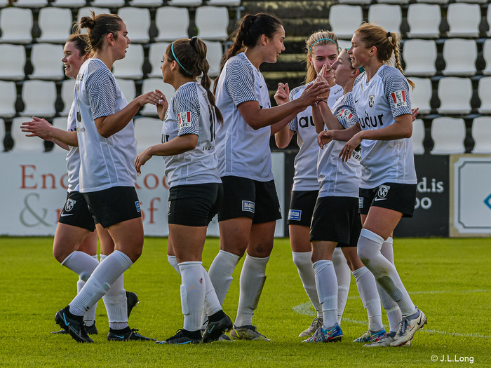Esther Rós Arnarsdóttir skoraði fjórða markið á 64. mínútu áður en Sunneva Hrönn Sigurvinsdóttir og Sigríður Lára Garðsdóttir skoruðu tvö mörk á lokamínútum leiksins.
