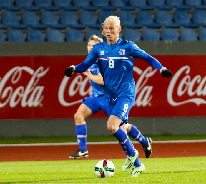 Miðjumenn: Kolbeinn Birgir Finnsson (Groningen, fæddur 25. ágúst 1999) og Aron Elís Þrándarson (Álasund, fæddur 10. nóvember 1994)