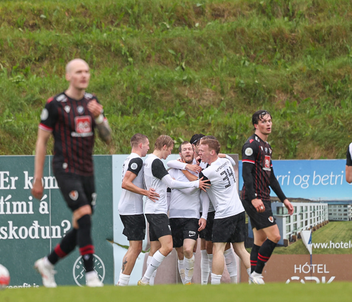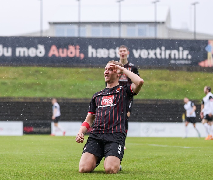 Þeir voru svo aftur á ferðinni undir lok leiksins, sama uppskrift, Sveinn Gísli með sendingu inn á teiginn og Valdimar mætti og setti boltann í netið og tryggði Víkingum stigin þrjú.