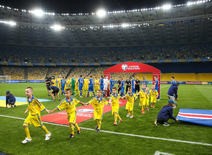 Úkraínumenn voru í áhorfendabanni og aðeins starfsmenn og fjölmiðlamenn sem máttu vera viðstaddir leikinn, og það á ristastórum leikvangi sem innheldur yfir 70 þúsund sæti. Fjölmiðlamenn voru eins og krækiber í helvíti.