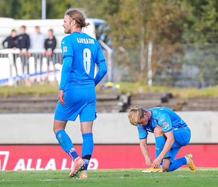 Sonur hans Albert Guðmundsson kom inn í byrjunarliðið eftir upphitun. Kolbeinn Sigþórsson gat ekki spilað leikinn.